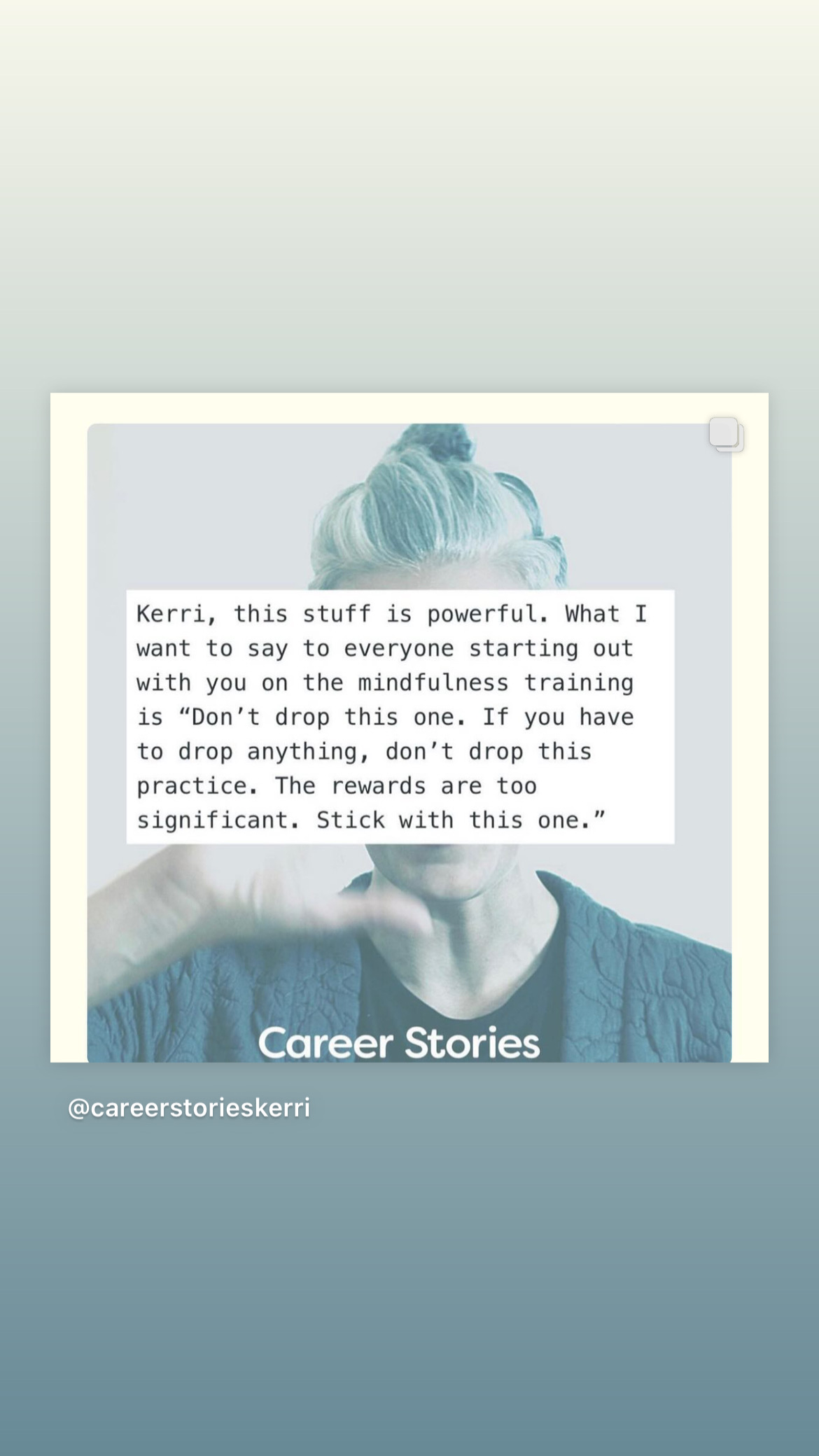 Expand your leadership story and capacity to receive every month by a story, mindfulness, or embodiment training sent directly to your inbox and supported with monthly community calls. These new Career Stories 2.0 trainings systematically build on the previous practices.. Share your reports, get feedback and additional guidance from Kerri in the community.