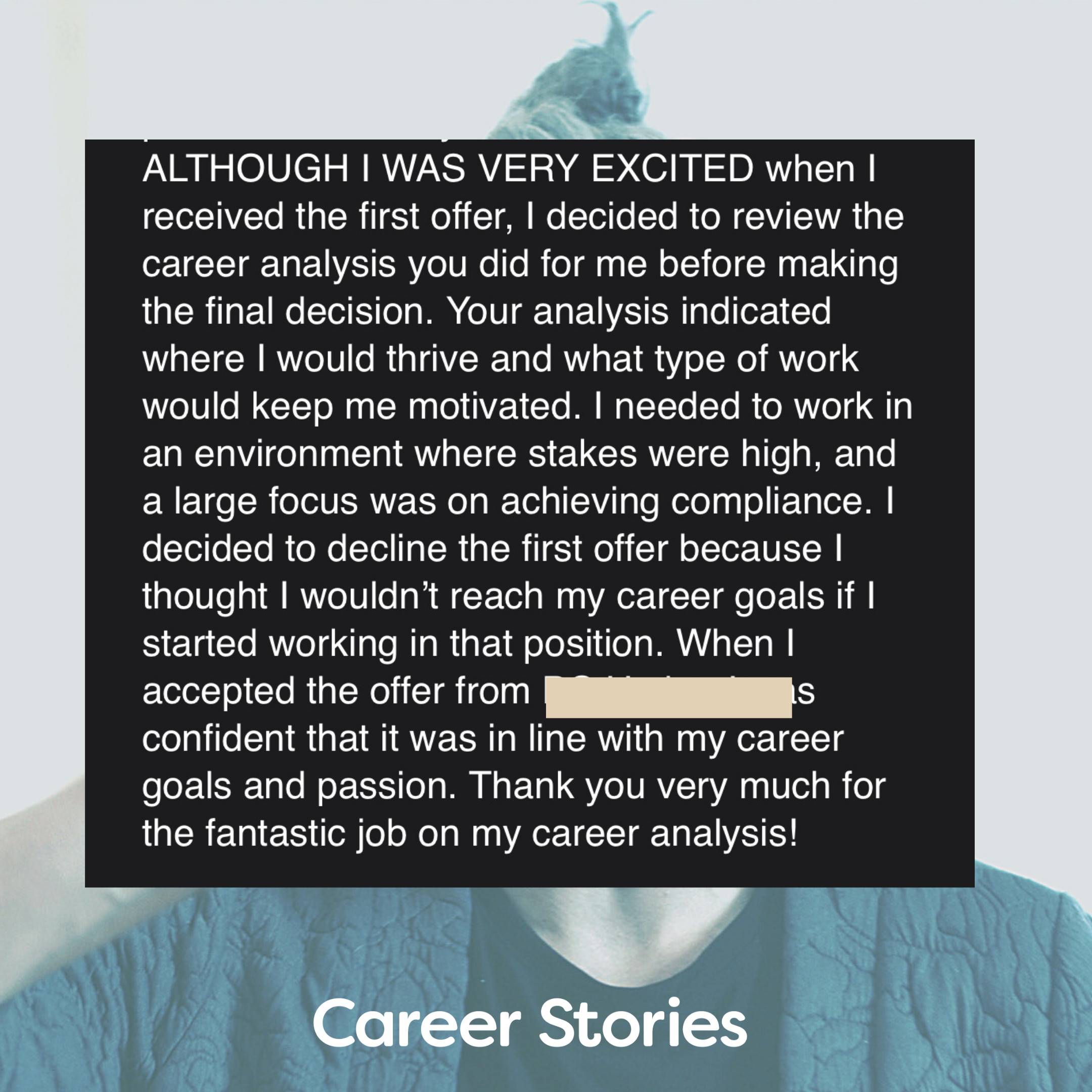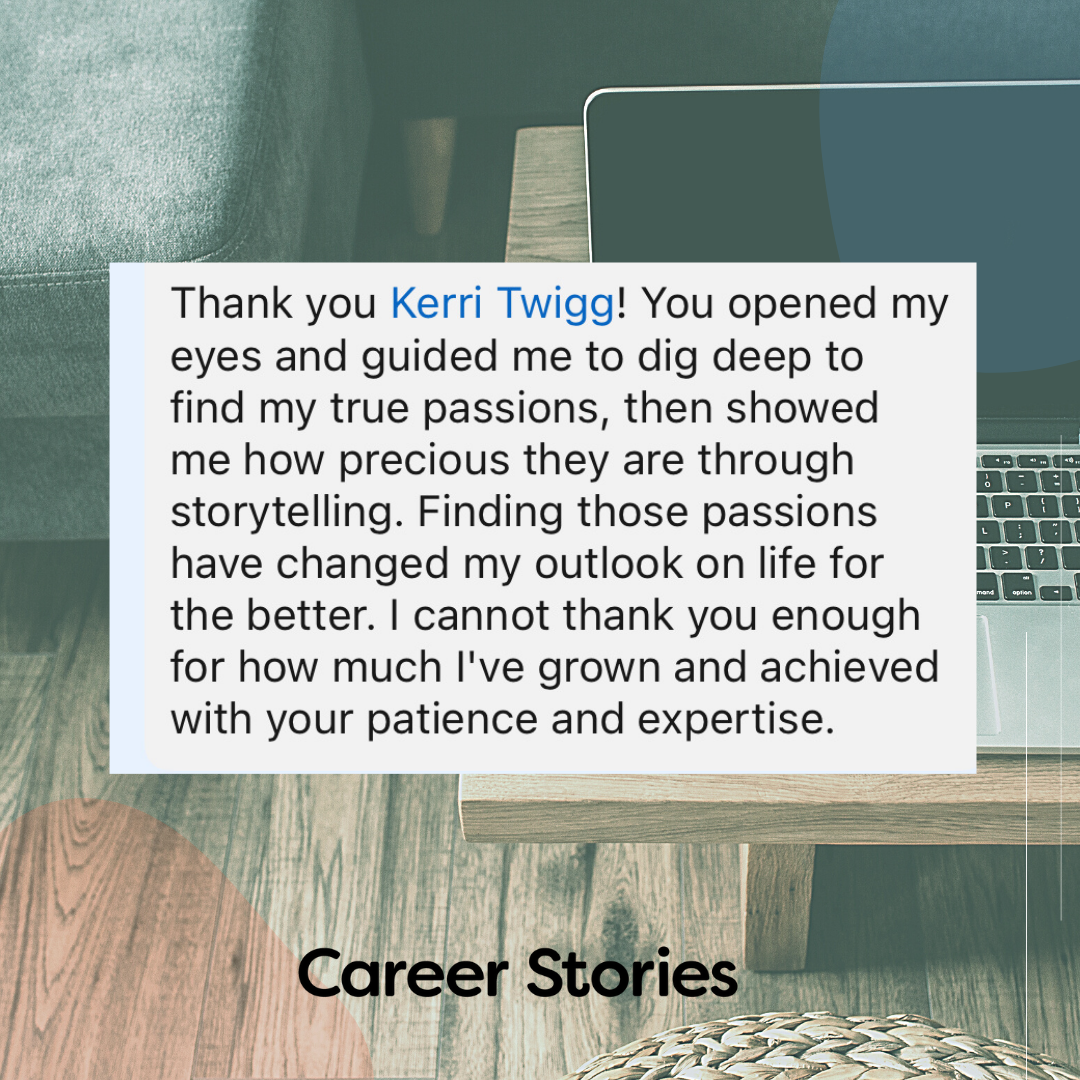 Join me on a private call where you can share your career stories with me (don't worry, I give you a process for finding those). On this call, I listen to your stories, ask questions, and learn about what makes you awesome. I'll listen with delight and interest. After our call, I'll send you a write-up about the common themes in your story, and what I think your career brand is.